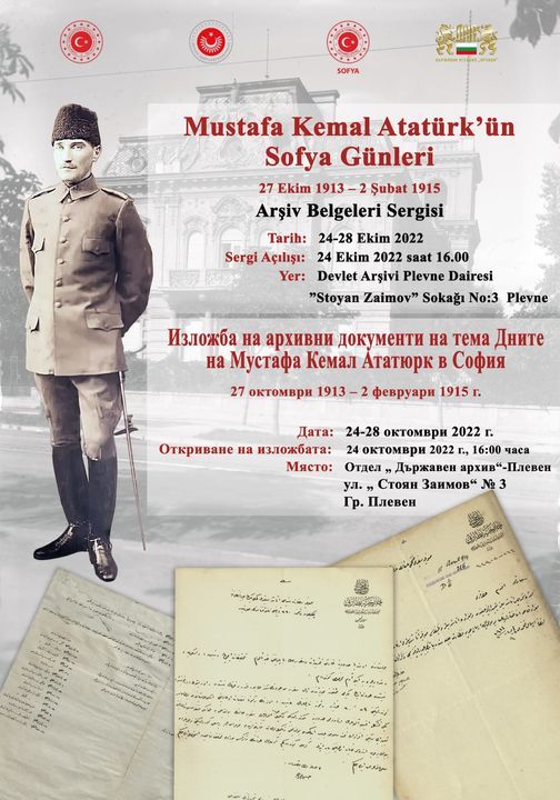 Türkiye’nin Filibe Başkonsolosluğu, 29 Ekim Cumhuriyet Bayramı etkinlikleri çerçevesinde Plevne’de “Mustafa Kemal Atatürk’ün Sofya Günleri” adlı arşiv belgeleri sergisini açtı.