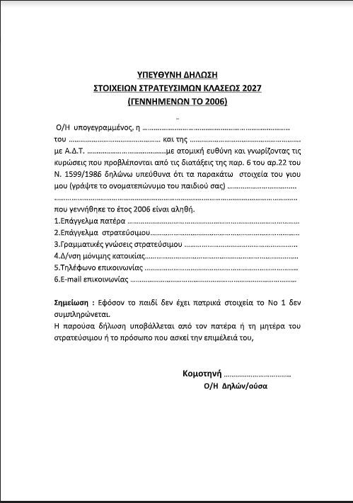 Gümülcine Belediyesi Nüfus Müdürlüğüne kayıtlı, 2006 doğumlu erkek çocukların Askerlik Kütüğü'ne kaydı için ailelerin beyanname yapmaları gerekiyor.