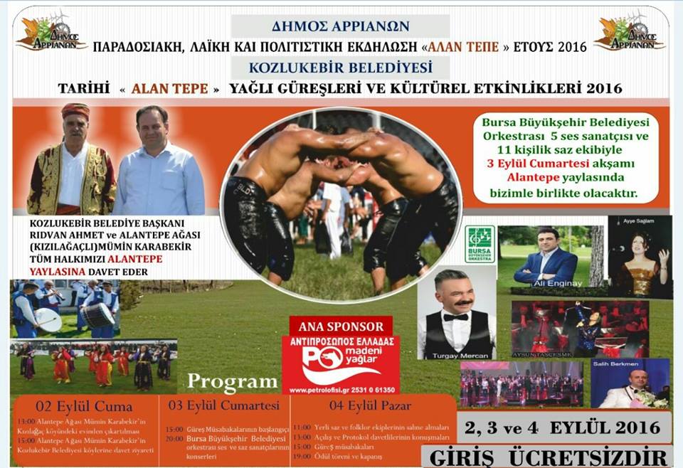 2016 Alantepe Yağlı Güreşleri ve Kültürel Etkinlikleri ana sponsorluğunu PETROL OFİSİ Yunanistan Yetkili Bayii Sorumlusu Delinasköylü İşadamı Güner Mustafa ve oğlu Emre Mustafa üstlendi.