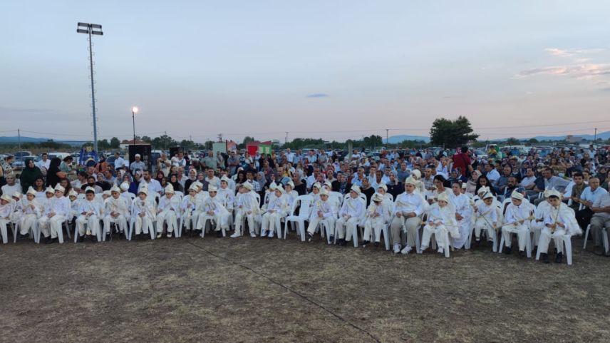 Sünnet olmuş 101 çocuk için Kozlukebir Belediyesi ile Gümülcine Seçilmiş Müftülüğü'nün birlikte Kozlukebir futbol sahasında bugün düzenlediği 4. Geleneksel Toplu Sünnet Şöleni saat 19.30’da başladı.