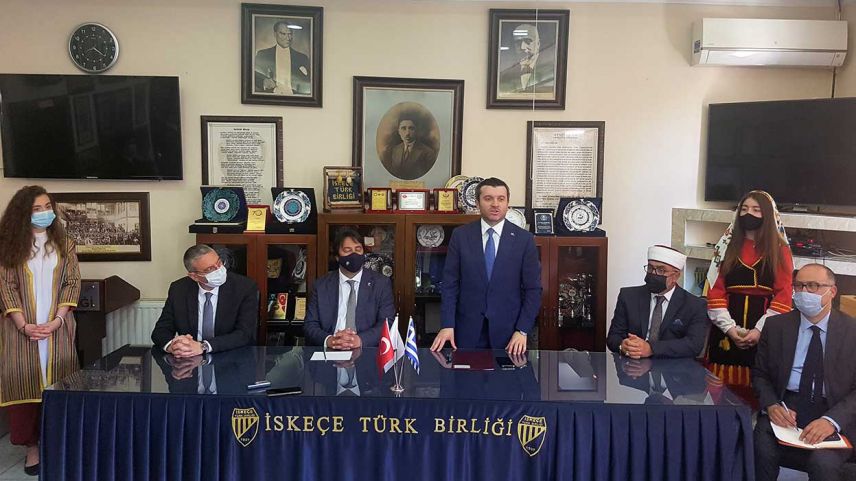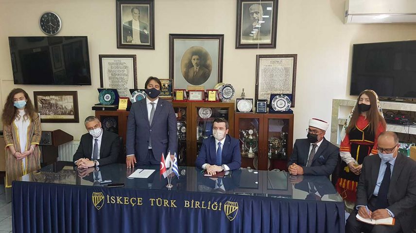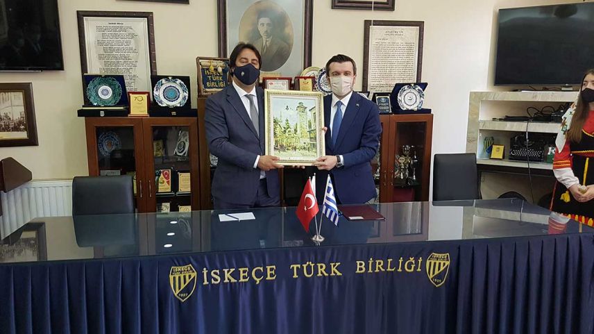 T.C. Dışişleri Bakanı Yavuz Selim Kıran'ın İskeçe Türk Birliği ziyaretinde önce İTB Başkanı Ozan Ahmetoğlu söz alarak derneğin çalışmaları ve yaşanan hukuki süreç hakkında bilgiler verdi.