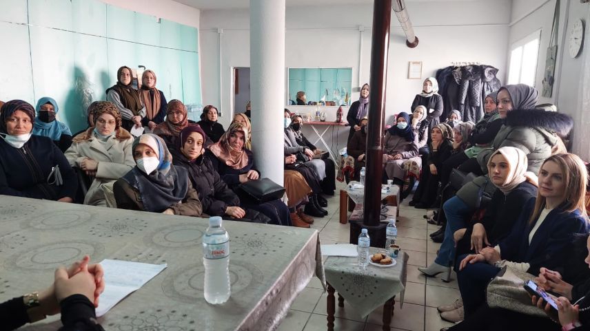 Vaize Hülya Giritli, modern eğitim metotlarının temelinde İslâmî uygulamalara, gelenekteki usul ile modern usul aslında birbirinden farklı değil birbirini tamamlar nitelikte olması gerektiği konularına değindi. Projede yapılan uygulama o hafta işlenilen konunun hem psikolojik ve sosyal yönden işlenmesi hemde dini açıdan ele alınması bayanların özellikle ilgisini çeken durum oluyor. Proje kapsamında yapılan bilgilendirme toplantıları bayanlar tarafından büyük ilgiyle takip ediliyor.