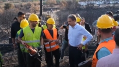 Ormanlık bölgesinde temizleme çalışmaları yapan Çilingir Mahalle Oduncular Kooperatifi ve Taşağıl Mahallesi Oduncular Kooperatifi üyeleriyle bir araya gelen Başbakan Miçotakis, orman müdürlüğü yetkililerinde ve temizlik yapan orman işçilerinden yapılan temizlik çalışmaları hakkında bilgi aldı.