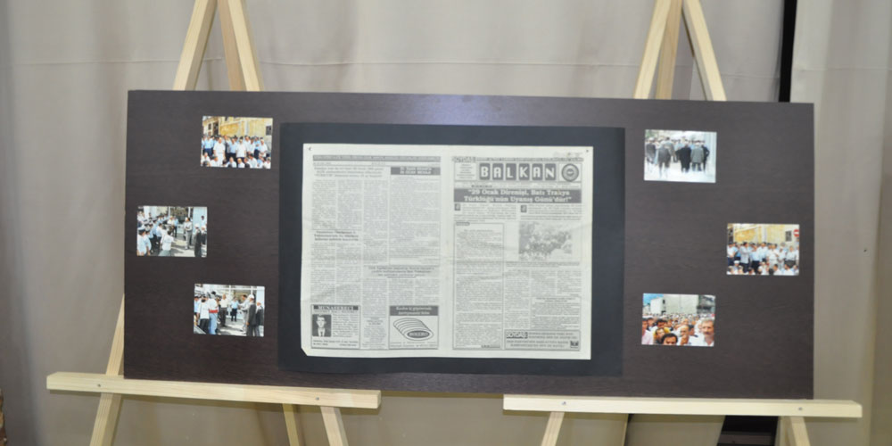 Anma etkinliğin sonunda katılımcılar salonda sergilenen 29 Ocaklar ile ilgili fotoğraf sergisini gezdiler.