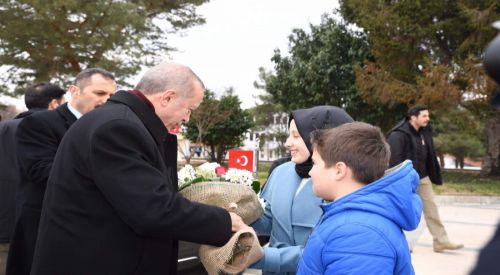 Batı Trakyalı Elif Salih Edirne'de Cumhurbaşkanı Erdoğan’ı çiçeklerle karşıladı
