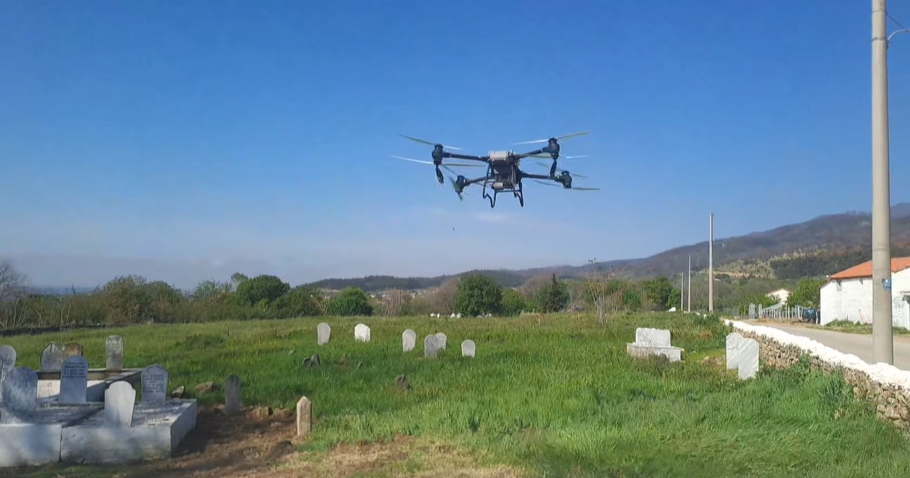 Yassıköy Belediye Başkan Vekili ve Başkan Yardımcısı Mehmet Arif, belediyenin bazı köylerinde yapılan mezarlık temizliğinde ilaçlama için drone kullanılmasını sağladı.