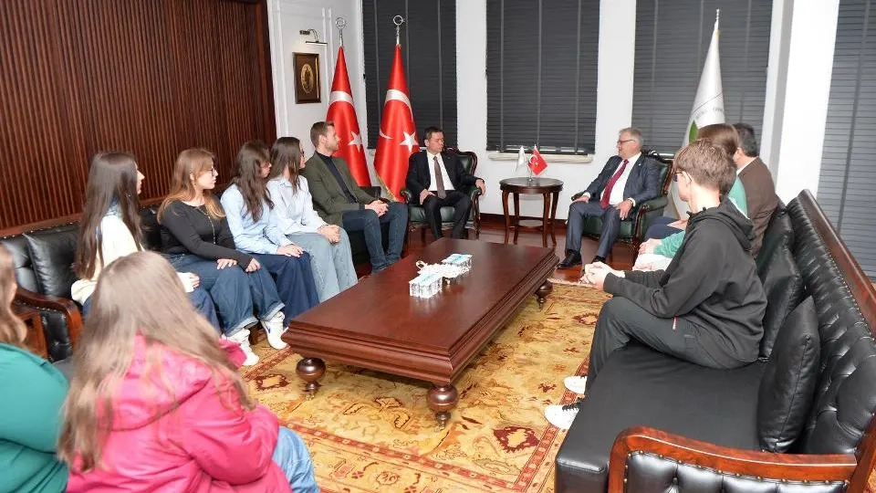 Batı Trakya Türk Öğretmenler Birliği tarafından düzenlenen gezi kapsamında, YAKAMOZ Grubu ve şiir seslendiren öğrenciler, Bursa Osmangazi Belediye Başkanı Erkan Aydın’ı makamında ziyaret etti.