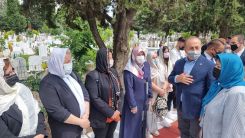 Bakan Çavuşoğlu, daha sonra çelenk bırakıp saygı duruşunda bulundu. Yapılan duanın ardından, merhum lider Dr. Sadık Ahmet’in kabri yanında bir çınar ağacı fidanını kendi elleriyle ekip suladı.