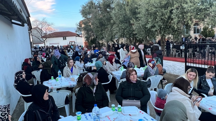 Caminin avlusunda ve etrafında hazırlanan sofraları köylüler ve komşu köylerden misafirler tıklım tıklım doldurdu.