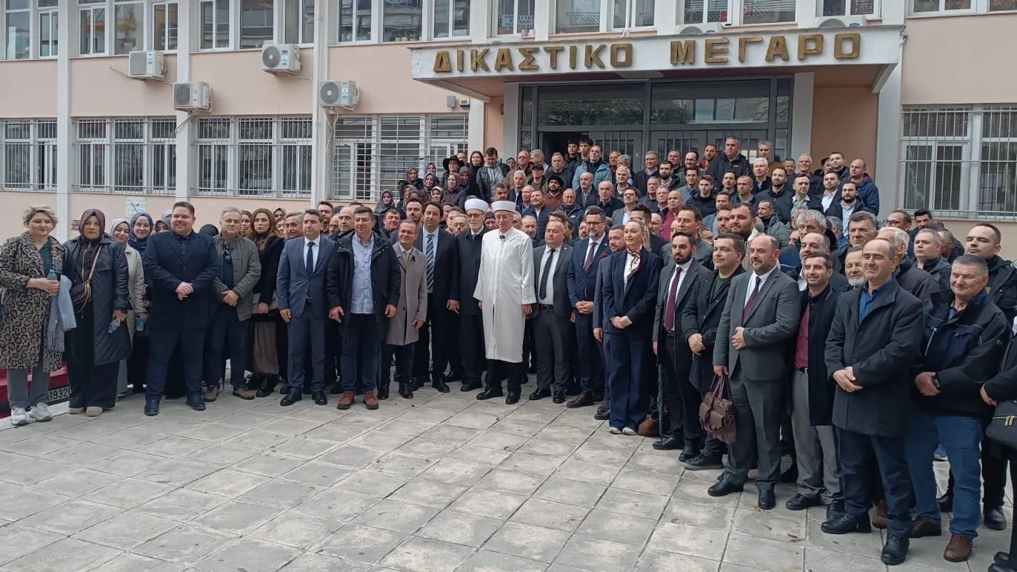 İskeçe Merkez Çınar Camii’nde 11 Ekim 2024 Cuma günü Yunan devletinin tayinli müftülerinin provokatif girişimleri sonrası yaşananlardan dolayı haklarında dava açılan dört Türk Azınlık temsilcisi 27 Mart Cuma günü İskeçe Adliyesine gelerek dayanışma gösterenlere teşekkür etti.