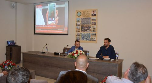 Daha sonra Mustafa Şargo söz alarak, ‘Sosyal medyanın büyük toplumsal olaylarda etkisi’ başlığı altında bir sunum yaptı. Sosyal medyanın insan hayatının her aşamasında yer aldığını kaydetti, sunumunu sinevizyon eşliğinde ve dünyada yaşanan bazı gelişmelerden örnekler vererek gerçekleştiren Mustafa Şargo, Sosyal Medya’nın toplumsal olaylarda rolünün çok büyük olduğunu söyleyerek sunumunu tamamladı.
