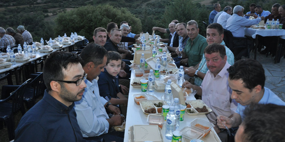 Kozlukebir Belediyesi Meclis Üyesi İlahiyatçı Abdülkadir Hafız Hoca’nın akşam ezanını okumasıyla okulun bahçesinde hazırlanmış masalarda vaktin gelmesini bekleyen yüzlerce soydaş birlikte oruç açtılar.
