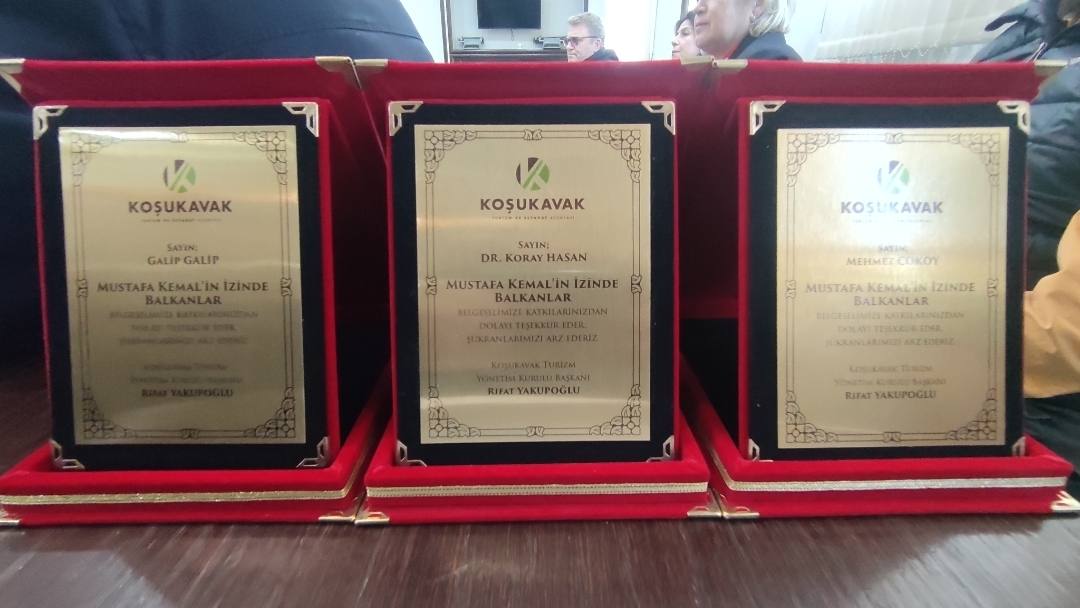 Ziyaret kapsamında düzenlenen törende, "Mustafa Kemal'in İzinde Balkanlar" belgeseline katkılarından dolayı eski milletvekili Galip Galip, Dr. Koray Hasan ve Mümin Mümin’e Koşukavak Turizm sahibi Rıfat Yakupoğlu tarafından plaket verildi.