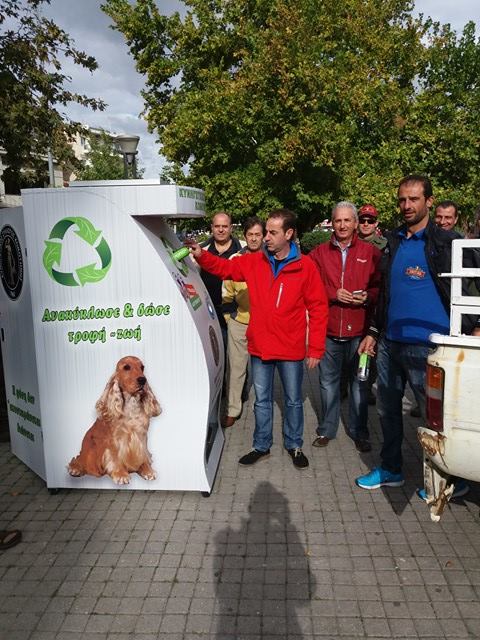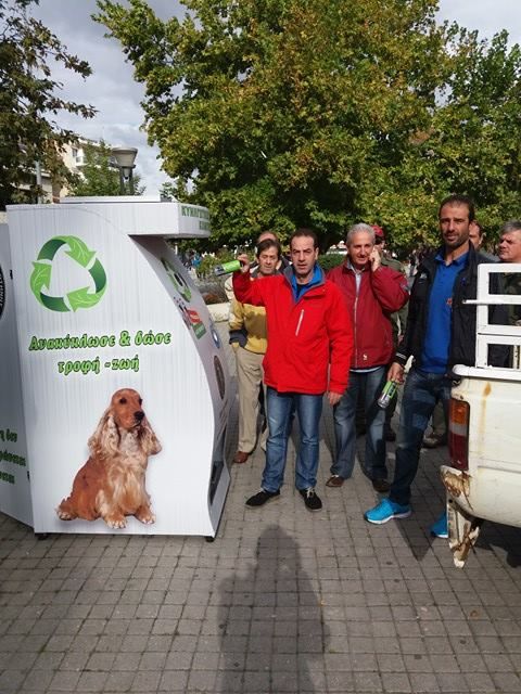 Köpek maması veren makine Perşembe günü şehir meydanında monte edildi. Makine monte edilirken Gümülcine Avcılar Kulübü Başkanı Panayotis Karafillis ve yönetim kurulu üyeleri de meydanda hazır bulundu.