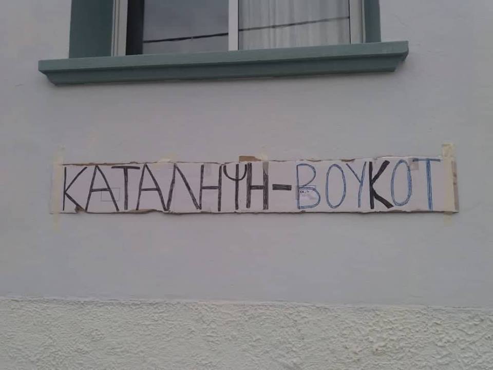 Okul Encümen Heyeti üyeleri ve velilerin de destek verdiği eylemde, "Tüm Azınlık okullarında olduğu gibi, Türkçe ile Yunanca müfredatın arasındaki dengenin korunmasını istiyoruz", "Medrese-i Hayriye'de ana dildeki eğitimi ve din eğitimini kısıtlayan kararın iptal edilmesini istiyoruz" yazılı döviz ve pankartlar açıldı.