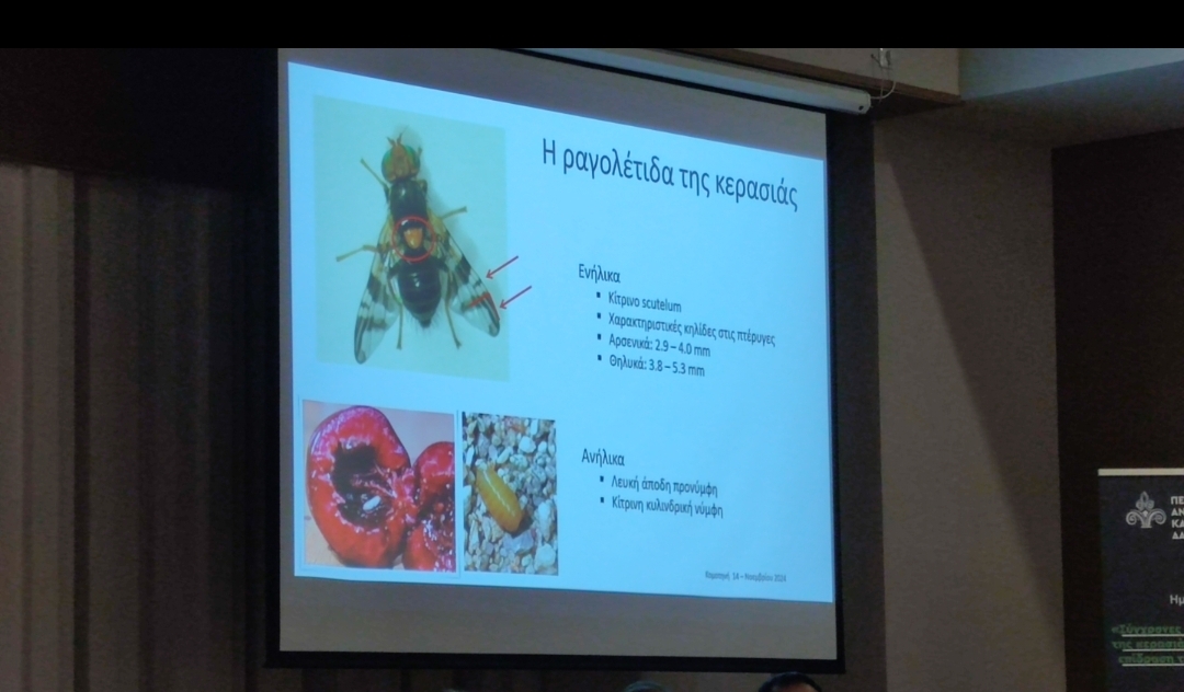 Papadopulos, konuşmasında kiraza zarar veren hastalıklardan bahsetti. Yaşanan tüm bu olumsuzluklara rağmen Yunanistan’ın kiraz üretiminde ilk 10 ülke arasında yer aldığını belirten Papadopulos, Türkiye’nin de önemli kiraz üreticilerinden olan bir ülke oldugunu vurguladı. Konuşmasının devamında kiraz hastalıklarından bahseden Papadopulos, Kiraz sineği (Rhagoletis cerasi) ve Asya meyve sineği (Drosophila suzukii) gibi zararlıları tanıttı ve meydana gelen hastalıkların kiraz üretimine önemli ölçüde etkilediğinin altını çizdi.
