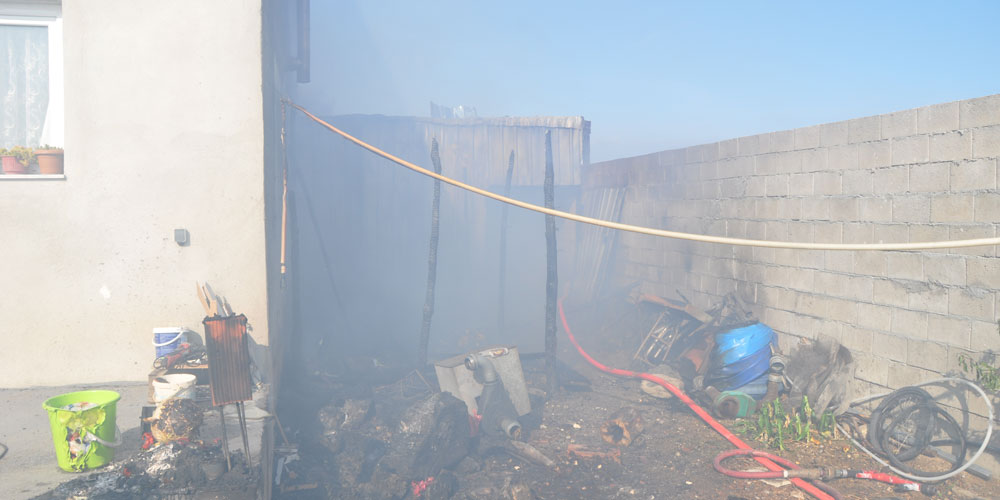 Harmanlık mahallesinde bugün saat 14:30 civarında Sarancına köyünden olan Hasan Tumbar Latif isimli soydaşın evinde yangın çıktı. Yangın ev halkının olmadığı bir zamanda haremde bulunan depoda meydana geldi.