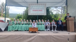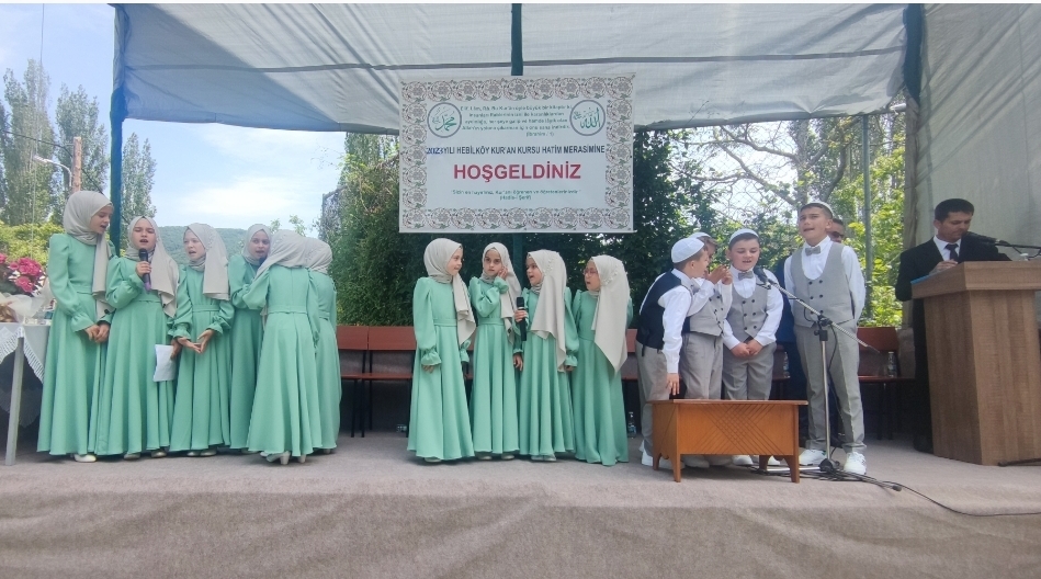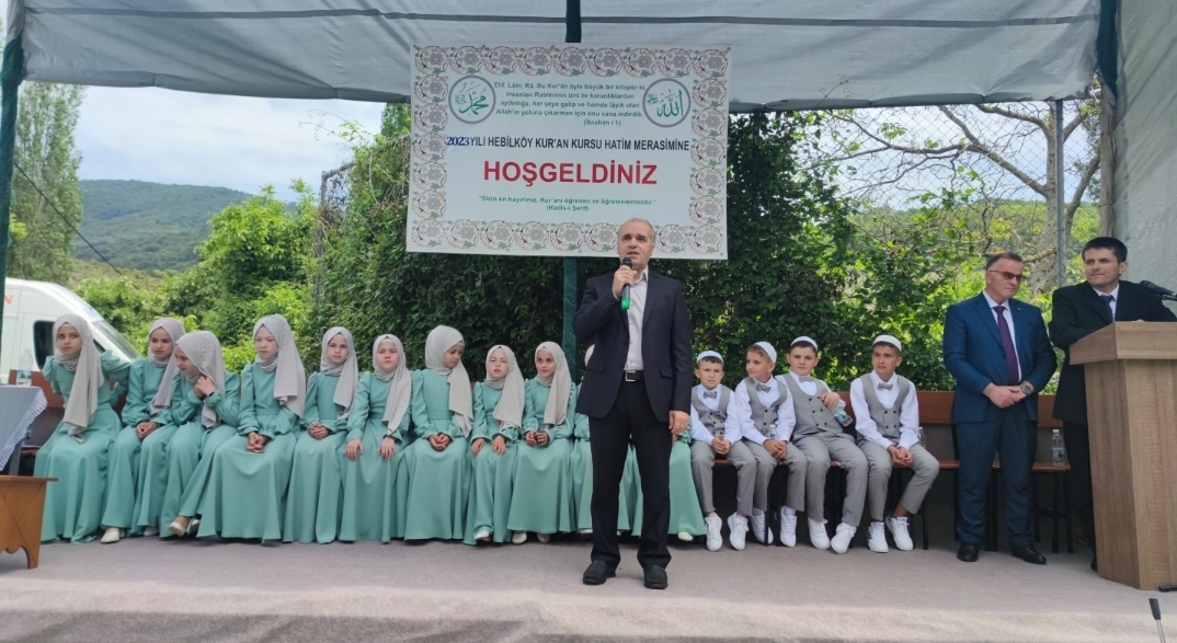 Hebilköy Kur'an Kursu'nda eğitim gören 15 öğrencinin bu yıl Kur'an-ı Kerim'i hatmetmeleri vesilesiyle ailelerin öncülüğünde köylünün de manevi katkılarıyla Hatim Merasimi düzenlendi.