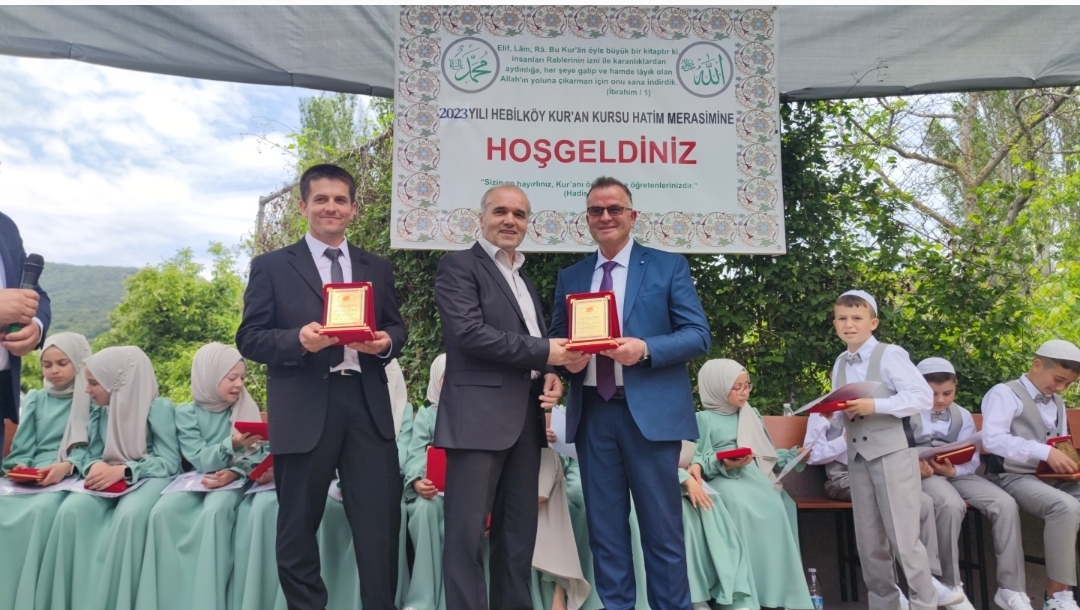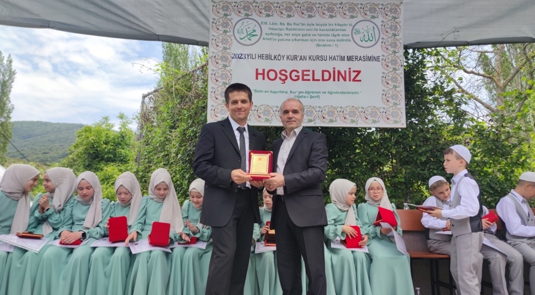 Devamında öğrenciler eğitim gördükleri Kur'an Kursunda görevli hocaları Ali Mahmut Paşa ve Hebilköy Azınlık İlkokul Müdürü olan öğretmenleri Hasan Pazlak tarafından hazırlanan hatim programını sundular.