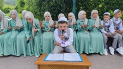 Öğrenciler, yüzlerce soydaşa birbirinden güzel ilahileri, dini konularda karşılıklı skeçleri ve namaz surelerini okudular.