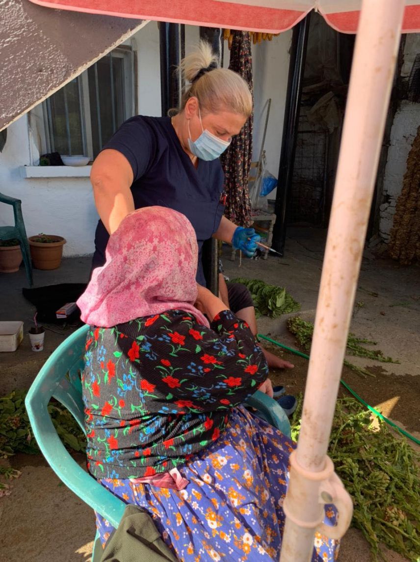 Farklı köylerden bir çok vatandaş koronavirüs aşılarının yapıldığı hastaneye yada sağlık ocaklarına gitmeden bu uygulamadan yaralandı. Yeni tip koronavirüs aşısını evinde yaptırdı.