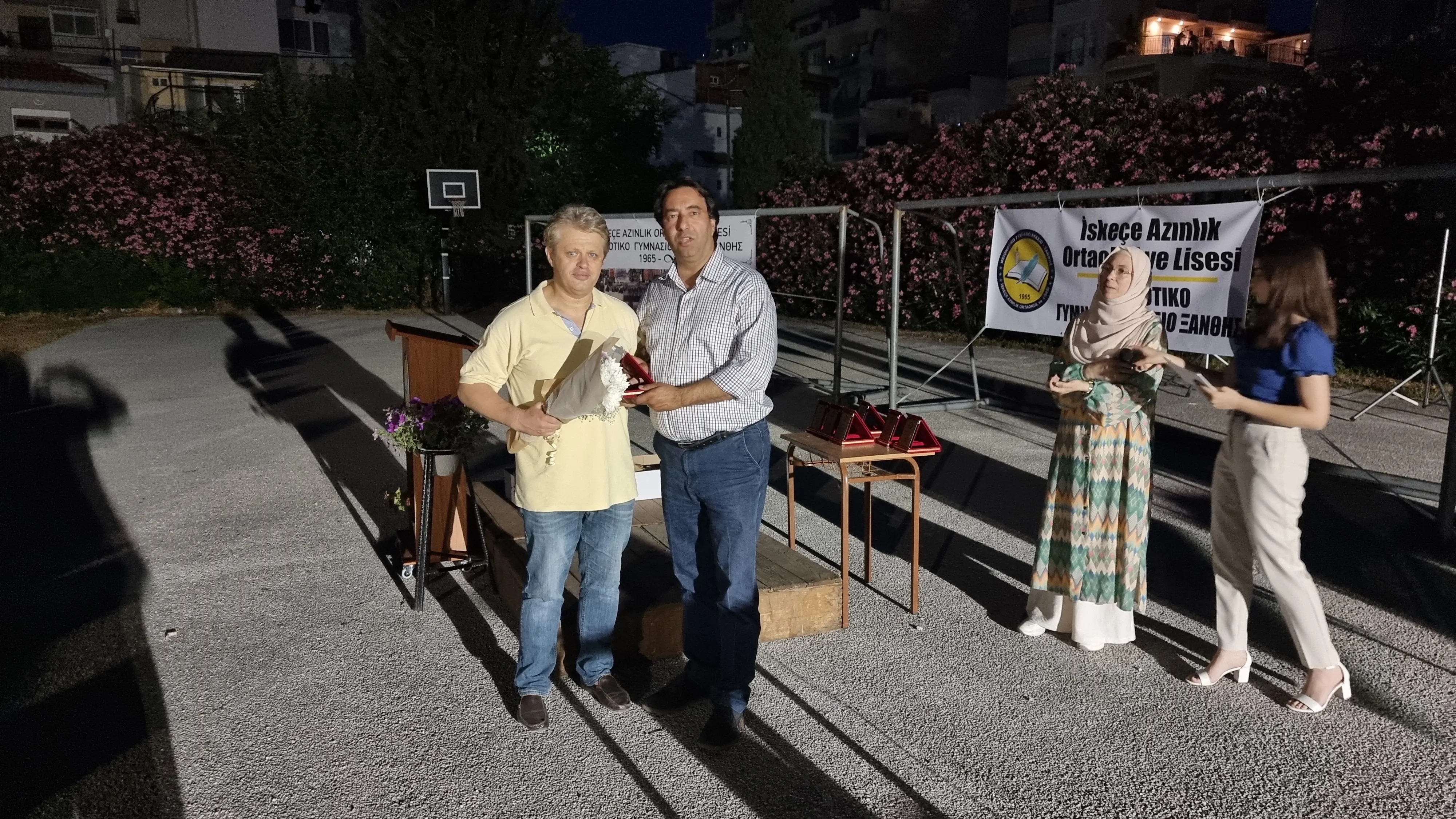 İskeçe Azınlık Ortaokul ve Lisesi’nin Aşağı Mahalle’de bulunan Spor Tesislerinde 1 Temmuz 2023 Cumartesi akşamı, Okulumuzun Okul Aile Birliği ve Encümen Heyeti tarafından ortaklaşa organize edilen 'İskeçe Azınlık Ortaokul ve Lisesi Emekli Öğretmenlerine Vefa akşamı ve Mezunlar buluşması' başarıyla gerçekleşti.