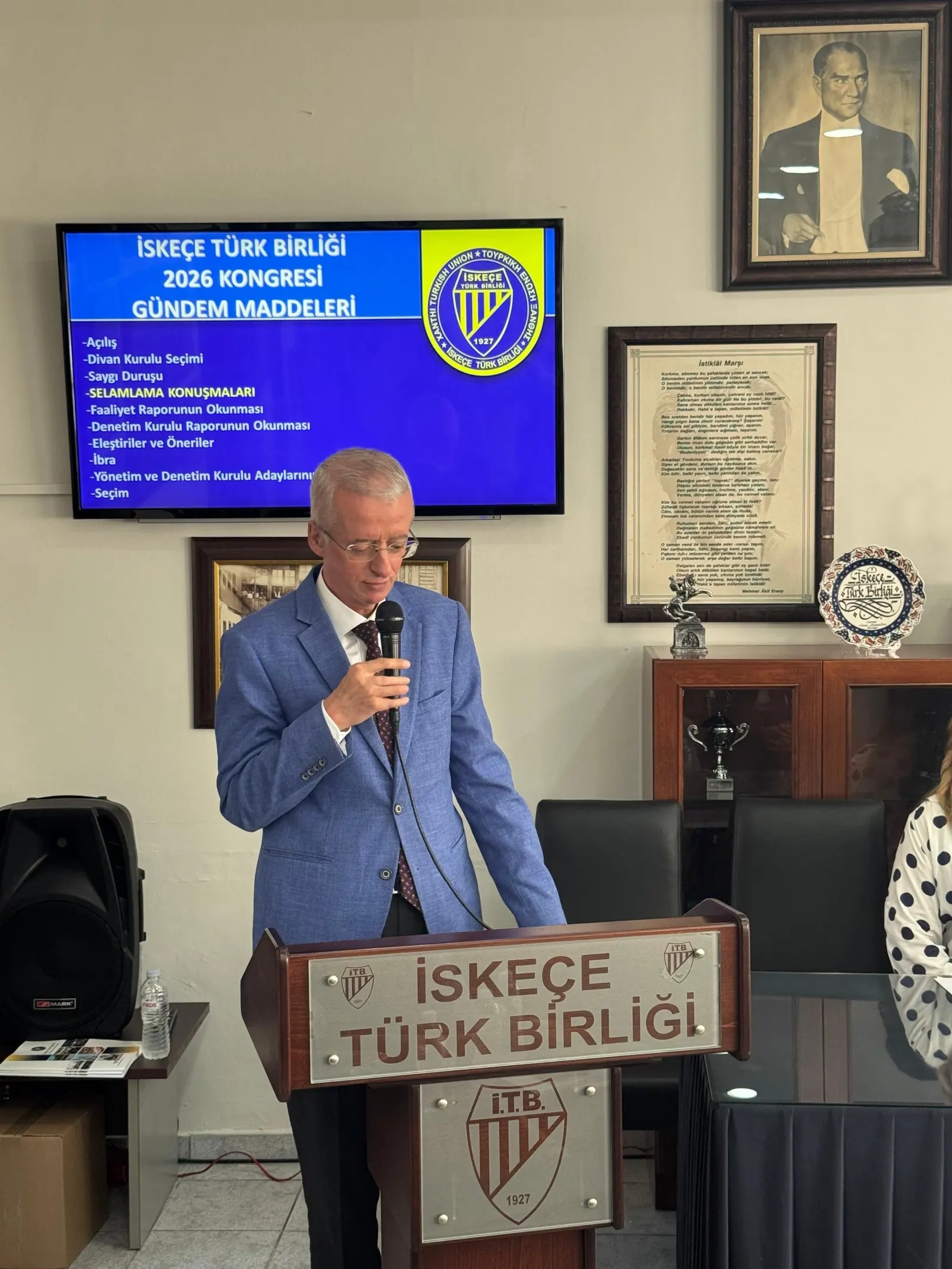 Divan oluşumunun ardından selamlama konuşmalarına geçildi. Bu bölümde İTB Başkanı Kerem Abdurahimoğlu ile Batı Trakya Türk Azınlığı Danışma Kurulu Başkanı ve İskeçe Müftüsü Mustafa Trampa birer konuşma yaptı.