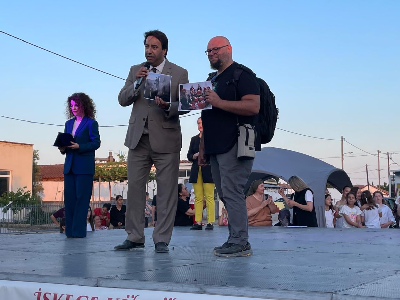 Son olarak ise Anadolu Ajansı Batı Trakya muhabiri Ayhan Mehmet’e teşekkür plaketi verildi. İskeçe Türk Birliği Başkanı Ahmetoğlu plaketi verirken yaptığı konuşmada “İskeçe’nin Mustafçova bölgesinde geleneksel kıyafetler giyen kızların fotoğrafları ile Zeynelli köyünde toplu iftar hazırlığı yapan kadınların fotoğrafların çeken AA muhabiri Ayhan Mehmet’in İngiliz Guardian gazetesi tarafından ‘Günün Fotoğrafı’ seçildi. Dolayısıyla Ayhan kardeşimiz Batı Trakya’nın ve İskeçe’nin tanıtımına önemli bir katkı sağladı. Kendisine teşekkür ederiz.” İfadelerini kullandı.