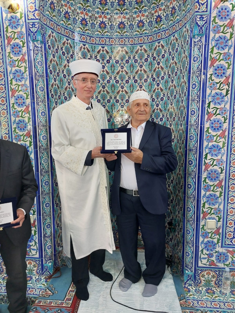 Konuşmaların ardından uzun yıllar Bratankova Camii’nde imam olarak görev yapan Hüseyin Dallı ve İmam yardımcısı-müezzin olarak görev yapan Hamdi Karaosman emekliliklerinden dolayı birer teşekkür plaketi ile ödüllendirildiler. Her iki din görevlisine teşekkür plaketlerini İskeçe Müftüsü Mustafa Trampa takdim etti.