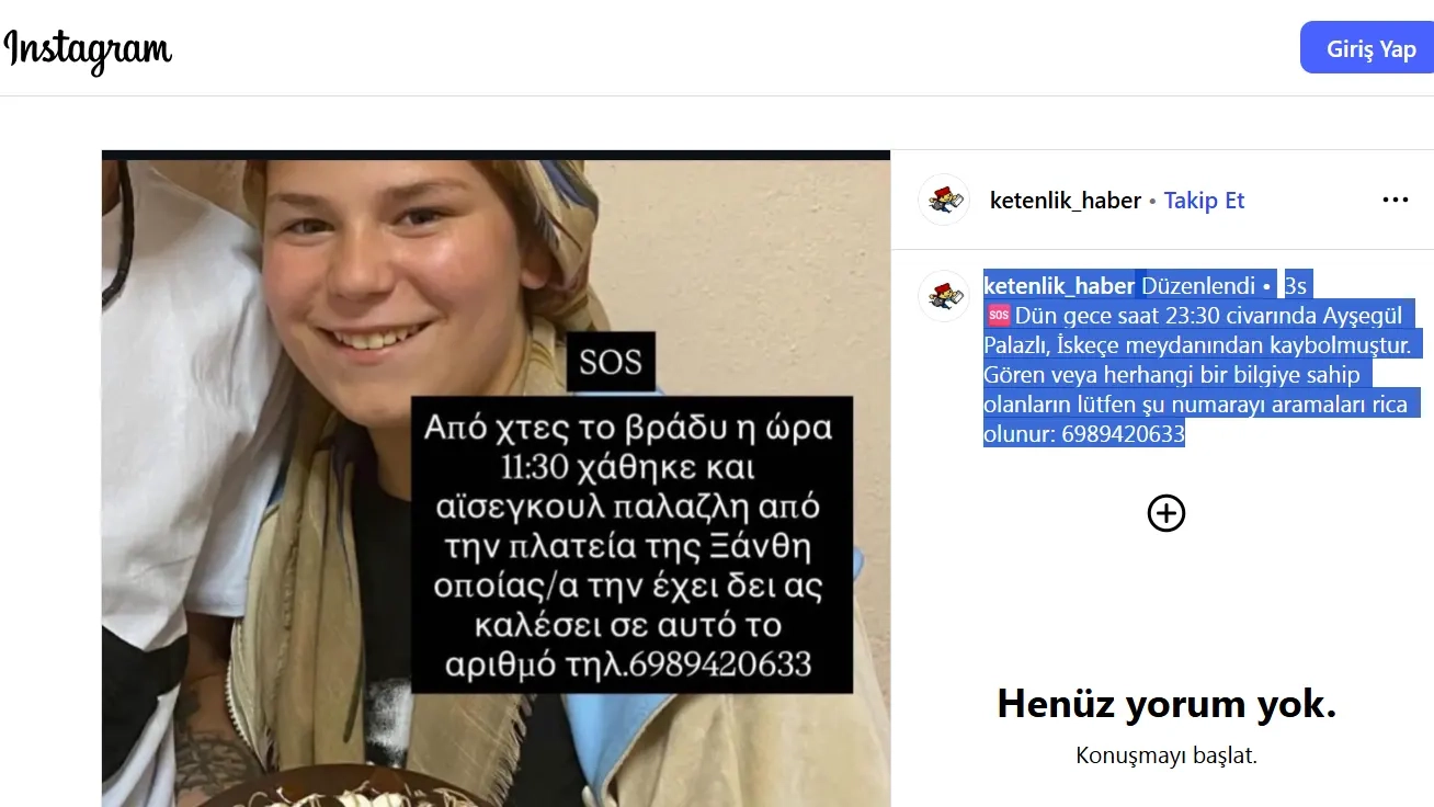 🆘 İskeçe merkezinde yaşayan Ayşegül Palazlı’dan dünden beri haber alınamıyor.