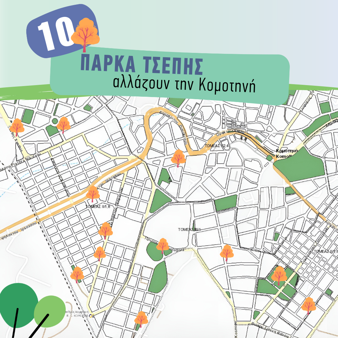 Antonis Gravanis liderliğindeki KOMOTİNİ DİNATA Listesi'nden meclis üyesi olan Mimar Katerina Moisidu'nun hazırladığı cep parkları projesi kamuoyuyla paylaşıldı