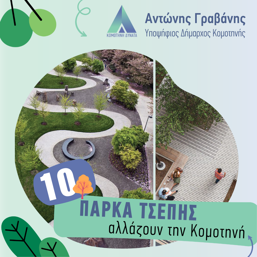 Gravanis başkanlığındaki KOMOTİNİ DİNATA ekibi, 8 Ekim 2023 tarihinde yapılacak yerel seçimlerde Gümülcine Belediyesi yönetimini almaları iktidara gelmeleri durumunda hayata geçirecekleri projelerden biri Gümülcine'nin yeşil alanını çoğaltacak farklı mahallelere 10 cep parkı yapma projesidir.