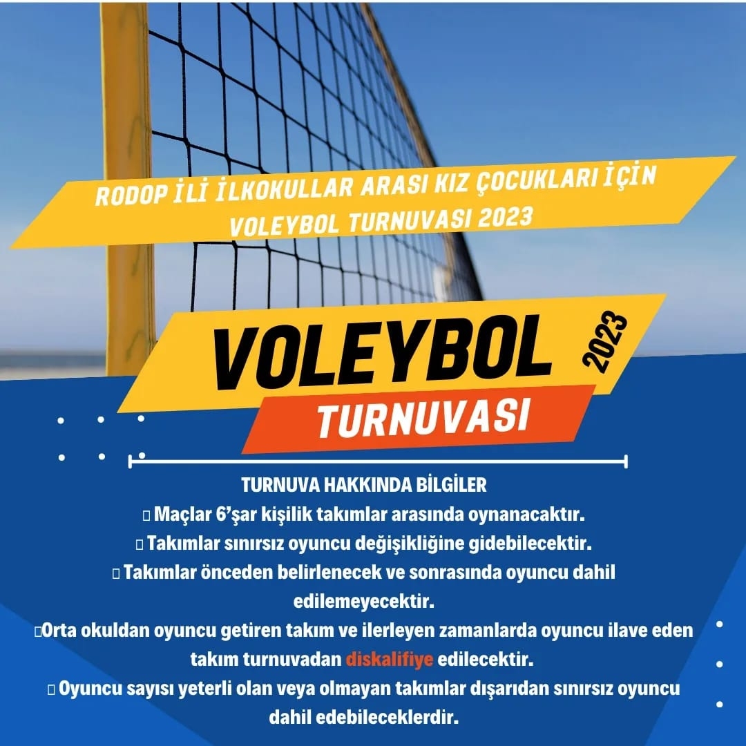Voleybol Turnuvası ile ilgili belediye tarafından yapılan açıklamda, "7 Mayıs 2023 Pazar günü 7. incisi yapılacak olan uçurtma şenliği kapsamında ilk okullar arası kız çocukları için 𝙑𝙤𝙡𝙚𝙮𝙗𝙤𝙡 𝙏𝙪𝙧𝙣𝙪𝙫𝙖𝙨ı düzenlenecektir. Takım kayıtları online olarak alınacak olup 7 Nisan 2023 Cuma günü sona erecektir. " denildi.