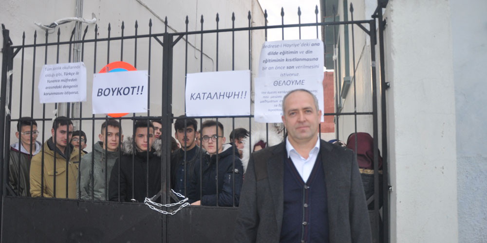 Gümülcine Medrese-i Hayriye okulu öğrencileri, Yunan devletinin Türkçe ve din derslerini azaltma kararında geri adım atmaması nedeni ile demokratik haklarını ku