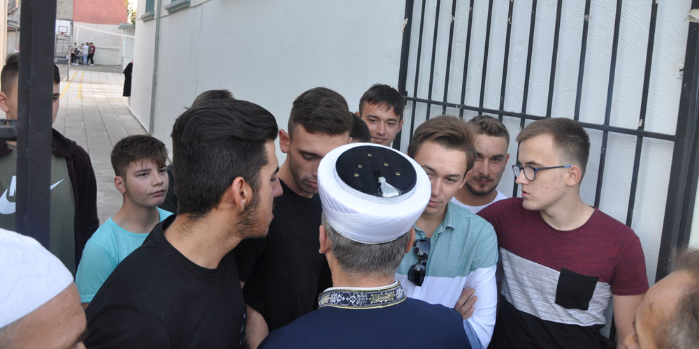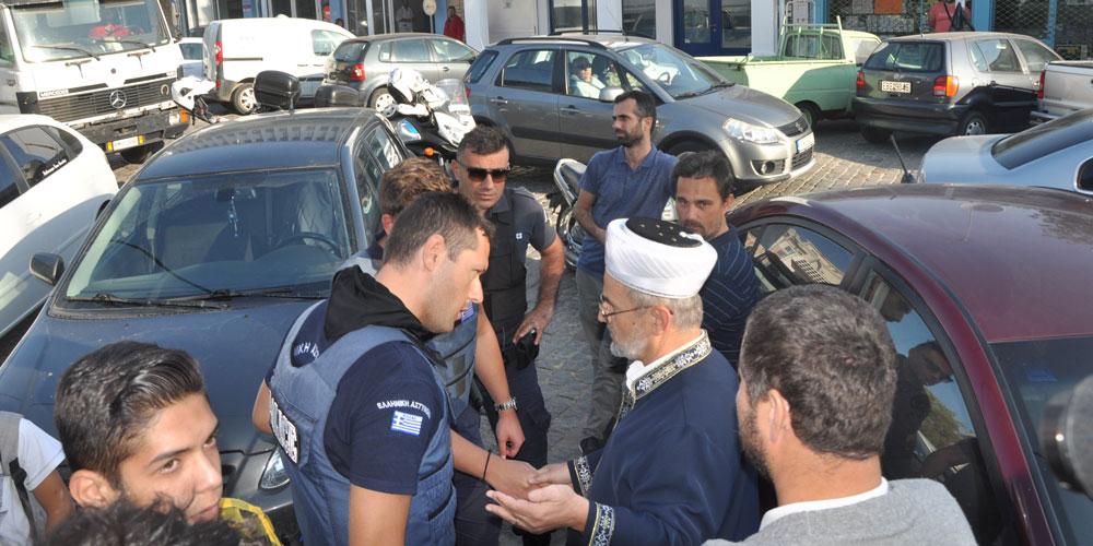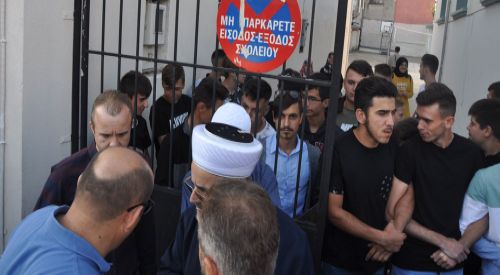 Müftü Naibi okulun önüne makam aracıyla geldi ve aracından indikten sonra okulun önünde öğrenci velilerinden ayrı bir yerde duran 240 İmam Yasası ile görev yapan Yunan devletinin imamlarıyla selamlaştıktan sonra okulun ana kapısına yöneldi.