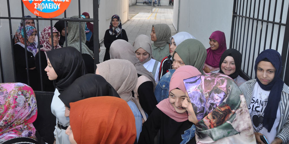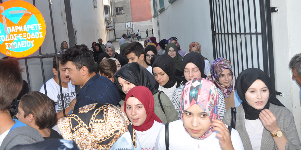 Gümülcine Medrese-i Hayriye okulunda eğitim gören öğrenciler 2019 –2020 eğitim yılının açılışına davet etmedikleri Yunan devletinin atadığı Gümülcine Taiynili M