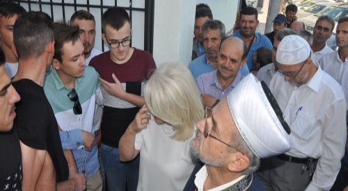 Dakikalar ilerledikçe okula giremeyen Müftü Naibi Cihat Halil’e destek için bu kez okulun önüne 2. Dereceli Okullar İl Eğitim Müdürü Meri Kozmidu geldi. Öğrencilerden naibin girişine izin vermelerini istedi.