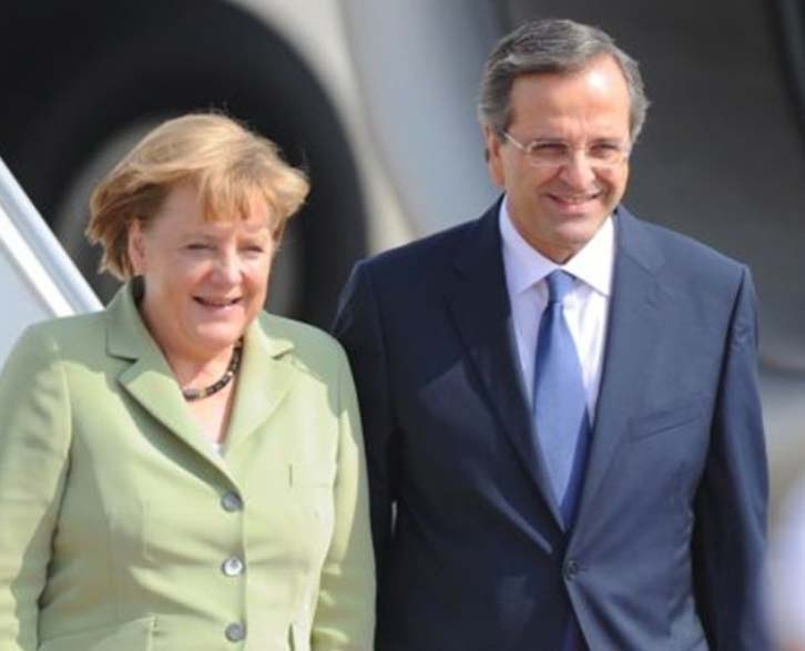 Başbakan Andonis Samaras'ın daveti üzerine günübirlik ziyaret için Atina'ya gelen Merkel, Başbakan Samaras ve Cumhurbaşkanı Karolos Papulyas ile görüştü.
