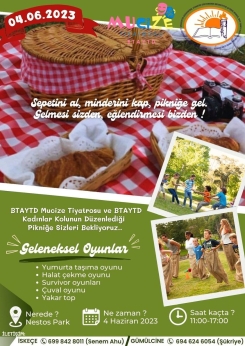 Tiyatro grubunda yer alan çocukların ve velilerinin yanı sıra, bütün çocuklara ve gençelere de açık olduğu belirtilen piknik etkinliğinde, yumurta taşıma oyunu, halat çekme, Survivor oyunları, çuval oyunu ve yakar top oyunu gibi geleneksel oyunlarla çocukları eğlenceli bir Pazar günü beklediği vurgulandı.