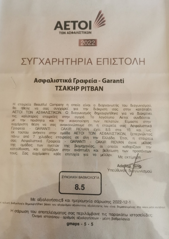 Yunanistan genelinde faaliyet gösteren ve başarlı işletmelere ödül veren bir firma 2022 ylındaki müşteri memnuniyetlerini baz alarak değerelendirme yaptı.