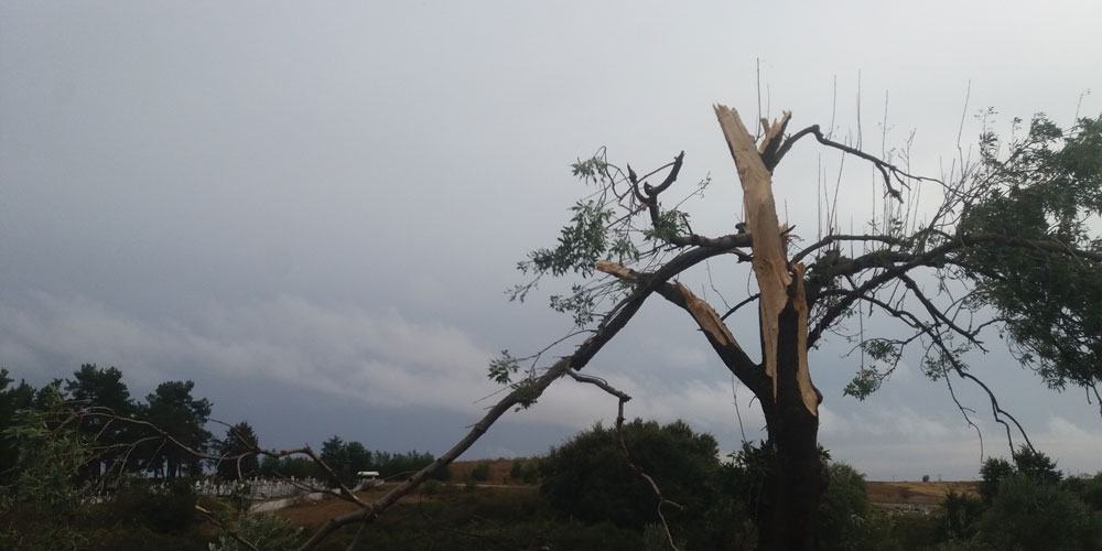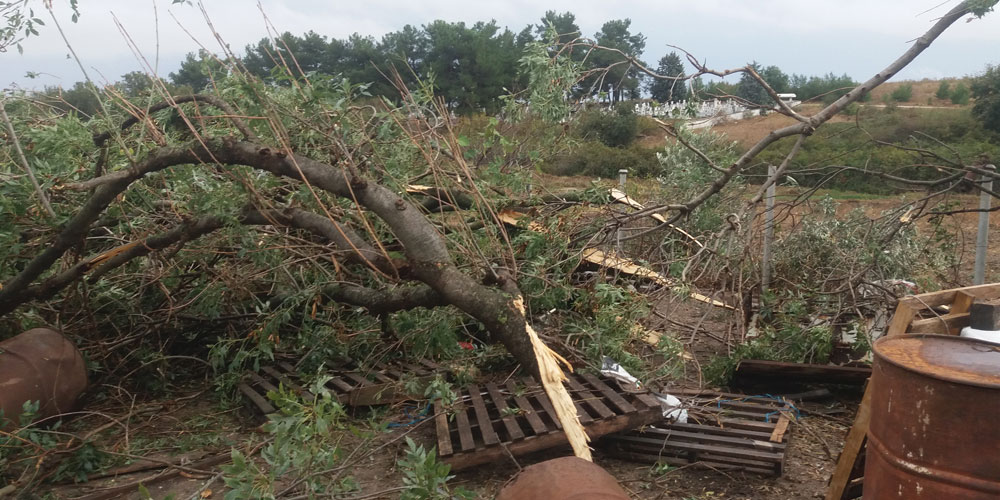 Sadece 5-6 dakika süren kasırganın ne derece güçlü olduğu, etkili olduğu bölgede elektrik direğini kırması, iskeleleri tarlalara savurması ve demirleri kıvırması, kırk yıllık kocaman ağaçları kökünden sökmesiyle anlaşıldı.
