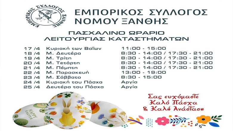 İskeçe Ticaret Derneği, yayınladığı basın bülteniyle Paskalya döneminde (17-25 Nisan) geçerli olacak mağazaların çalışma saatlerini açıkladı.