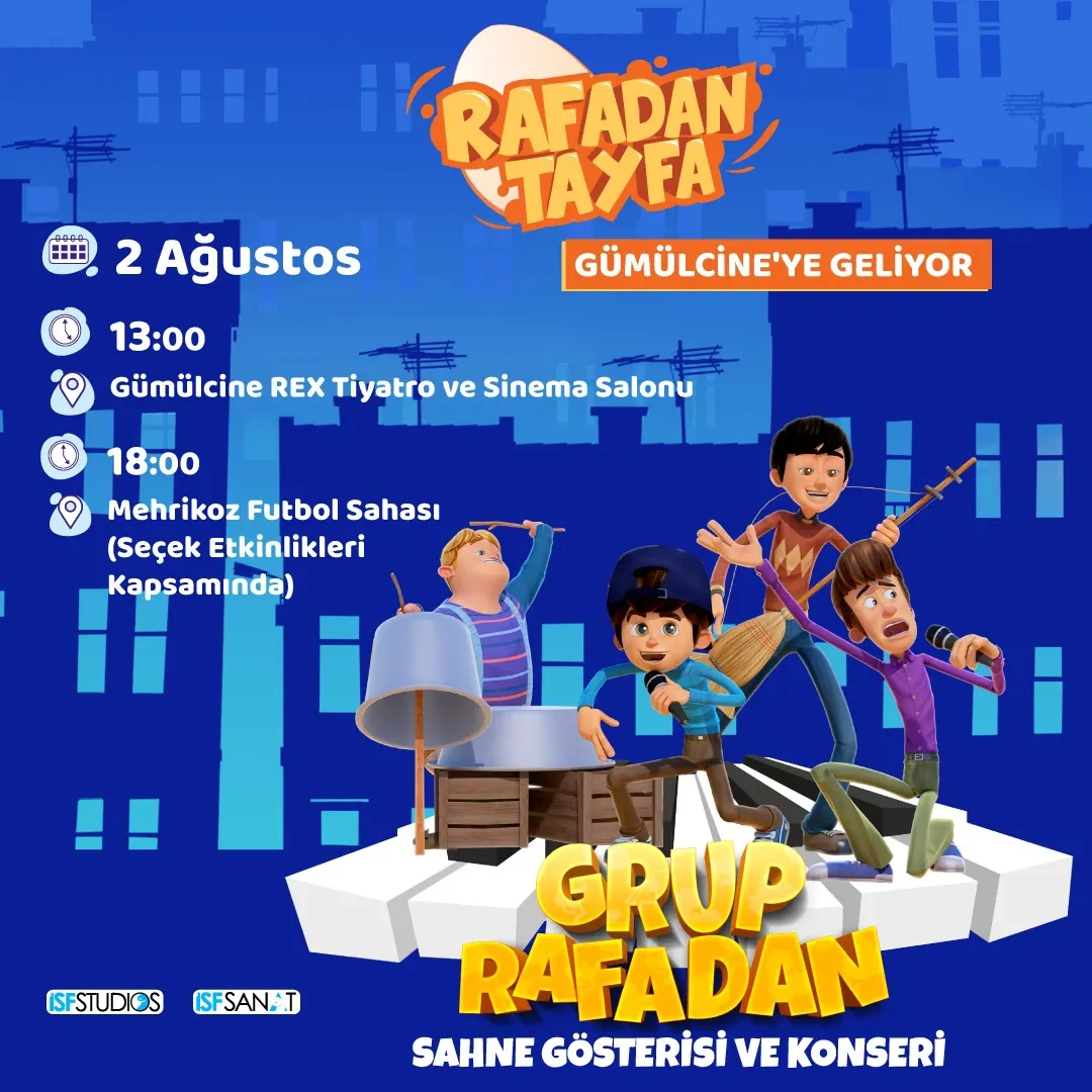 Türkçe yayın yapan çizgi film serileri arasında geniş bir izleyici kitlesine sahip olan Rafadan Tayfa, bu gösterimle birlikte Batı Trakya’daki Türk çocuklarına hem eğlenceli hem de kültürel anlamda keyifli bir gün yaşatmayı hedefliyor.