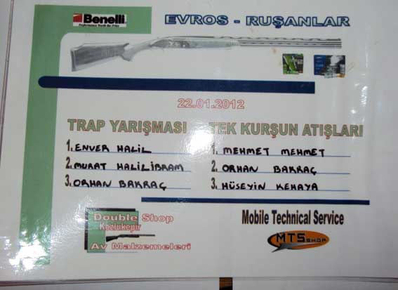 Değişik bölgelerden, yaklaşık 70 avcının katıldığı Trap yarışması Evros’un Ruşanlar köyünde 22 Ocak Pazar günü kötü hava şartlarına rağmen gerçekleşti. Tek ku