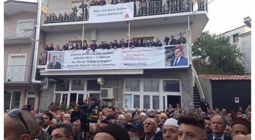 Çavuşoğlu'nun konuşması sırasında çevredeki binaların balkonlarında bulunan köylüler, Cumhurbaşkanı Recep Tayyip Erdoğan'ı kastederek, "Reisicumhur'u Balkan çayına bekliyoruz" yazılı pankart açtı. Bunun üzerine Çavuşoğlu, "Biliyorum, tüm ümmetimizin olduğu gibi, tüm milletimizin olduğu gibi, onun dik duruşunu, onun şefkatli bakışını, onun mazlumlara sahip çıkışını, onun kadirşinaslığını bilerek onu burada görmek istiyorsunuz, her geldiğimizde bunu ifade ediyorsunuz. Allah nasip ederse neden olmasın. Ankara'ya döndüğümde bu talep ve isteğinizi kendisine ileteceğim." ifadelerini kullandı.