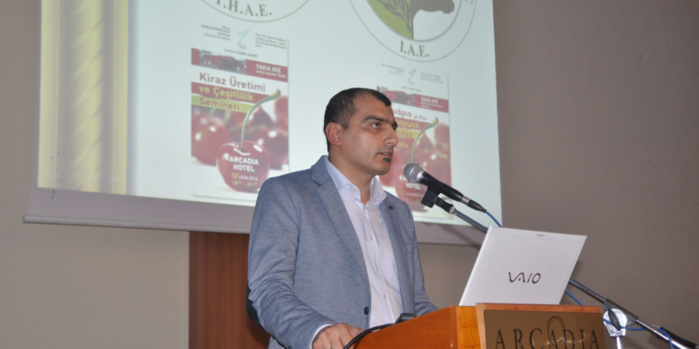 Seminerin ilk bölümünde GENECON Şirketi Kalite Hizmetleri Sorumlusu Nikos Margaritopulos söz aldı. Ardından toplantıya Türkiye’den katılan Uludağ Yaş Meyve – Sebze İhracatçılar Birliği Başkanı Prof. Dr. Semih Yazgan söz alarak konuşma yaptı. Her iki konuşmacı da kiraz üreticilerine önemli bilgiler aktardı.