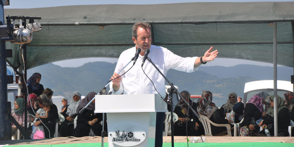 "Sayın protokol üyeleri, sevgili arkadaşlar, milletvekili sıfatımla aranızda bulunmaktan büyük bir mutluluk duyuyorum. Alantepe’de bu büyük geleneksel yağlı güreş etkinliğinde Yunan parlamentosu milletvekili olarak sizlerle birlikte bulunuyorum. Bu etkinliği düzenleyen Kozlukebir Belediye Başkanına ve yönetimini tebrik etmek gerekiyor. Kısa süre önce göreve gelen iktidar kısa süre içerisinde henüz bütün kağıtları açmadı. Ancak bazı yapılanlar ve söylemler gösteriyor ki gelişmeler iç açıcı değil. Devlet herkes için vardır, sadece her iktidarda gelenlerin yakınlarının yararlanması için değildir. Bu iktidar çoğunluk için konuşuyor olabilir, ancak iktidarın akıl ve kalbi az kişiler için bulunuyor. İlk kanun düzenlemeleriyle de gönderdiği mesaj budur. Aleksis Çipras ve biz milletvekilleri her zaman hazır olacağız. Bölgemizin çıkarı ve çoğunluğun yararı için kararlı ve sorumlu solacağız. Şunu bilmenizi isterim ki, siyasi, dini inanca ve etnik kökene bakmaksızın herkesin milletvekili olacağım. Bölgemizin çıkarlarına hizmet edeceğim. Geçen yıl yaşanan afetlerle ilgili sorunları çok iyi biliyorum. Bu felaketlerden sonra bu sene de benzeri kısa süre önce yaşandı. Bilmelisiniz ki, tütüncülerin doğal afetlerde doğal afetlerden dolayı yaşadıkları sorunların giderilmesi için Tütüncüler Kooperatifi ile işbirliği yapacağım. Çalışmalarım bu doğrultuda olacak. Sizlere teşekkür ediyorum.”