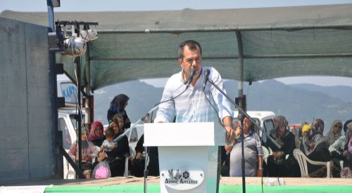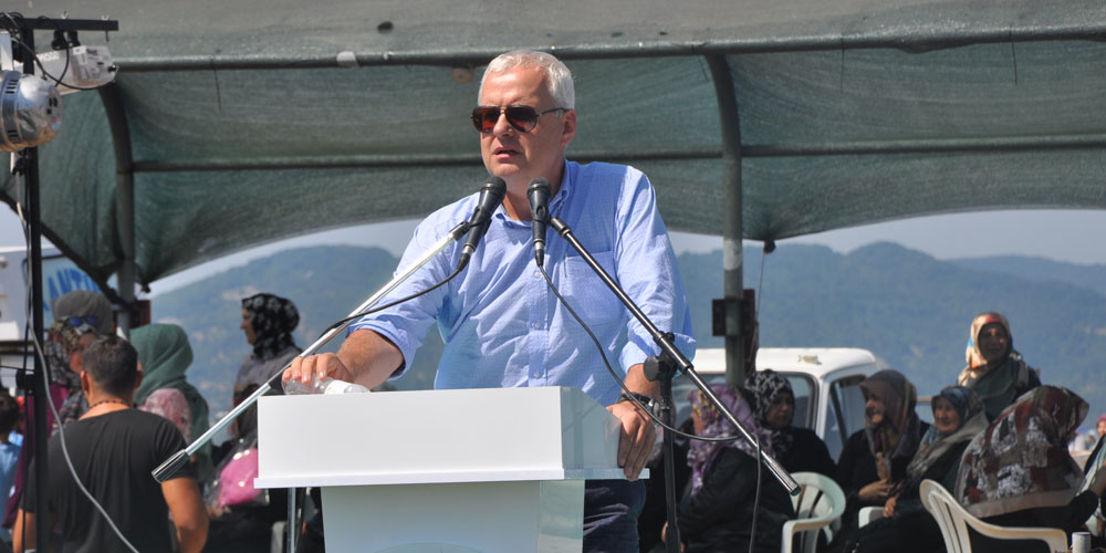 "Burada Alantepe er meydanında aralıksız olarak 15-20 yıldan beri beraberiz. Bu er meydanında pek tabii ki ben sizin temsilciniz, milletvekiliniz olarak mutlaka bazı konulara kısaca değinerek gerekli mesajın verilmesi için sizlerin huzuruna geliyoruz. Bugün de aynı şekilde çok kısa şekilde iki üç tane mesaj vermek istiyorum. Bunlardan biri şudur; Hepinize tekrar yürekten teşekkür etmek istiyorum. Yiğit olarak, dik durarak azınlıktaki temsilin gerçek manada olabilmesi için ve milletimizin azınlığımızı temsilcisiz kalmaması için her türlü tuzağa, her türlü oyuna ve her türlü hileye karşı dik durduğunuzdan dolayı sizlere teşekkür ediyorum, sizi tebrik ediyorum birinci mesajım bu. İkinci mesajım ise şu; bugün iktidarı kaybetmiş olanlar yani bir önceki hükümetin ve bugün iktidara gelenlerin şunu çok iyi bilmesi lazım. Onların bir takipçisi var. Milletin bir zekası var, milletin bir aklı var, onların takipçisi benim sayın soydaşım. Peki bundan 1 sene önce tütünlerimizde ve başka ürünlerimizde €100 Deminimis verip milleti inim inim inleten ve zarar parası budur sana diyenlerin bugün de zarar için timsah gözyaşları dökmelerini tabii ki demokrasi çerçevesinde hoş görüyoruz ama ot yemediğimizi de biliyoruz. Öbür taraftan yeni seçilen Başbakan sayın Miçotakis’in şimdi Eylül ayından sonra vereceği sınavı, vereceği sözleri de hep birlikte takip edeceğiz. Bunu da çok iyi bilmenizi istiyorum sevgili soydaşım sakın merak etme. Dolayısıyla bu milletin gerçek hak ve hukukunun takipçisi biziz. Üçüncü olarak, bir önceki hükümet zamanında azınlık haklarımıza yapılmış olan saldırılar, müftülüklerimize, dini kurumlarımıza yapılan saldırılar Kurban bayramlarında kurbanlıklarımızı kesemememiz, Bölge Genel Sekreterliğinin 1 yıl önce almış olduğu kararla bunun yasaklanması ve bunu biz eskiden beri yapıyorduk bunu yine yaptık deyip geçen sene mangalın üzerinde kül bırakmayanların bu sene aynı yasağı aldıklarını üzülerek görmüş oluyorum. Tabii Ağustos ayında Parlamento kapalıydı. Fakat şimdi Eylül ayından sonra yeni hükümetin de sınavlardan bir tanesi de bu olacak. Ne olacak bu din özgürlüğünde Kurban Bayramı’nda büyükbaş hayvanların kesim meselesi. Bu meseleyi unuttun mu, bu meseleyi unuttuk mu? Azınlığı bir önceki hükümetin uyutması gibi yeni dönemde de bu iş ortadan kalkacak mı zannediyorlar tabii ki hayır. Nerede geçen sene muhalefetteyken çağırıp bağıranlar, bu sene sesleri duyulmuyor. Nerede Bölge Genel Sekreterliğindeki o yiğitler. Sevgili soydaşlar üç mesaj dedim. Takip, mücadele ve sonuna kadar azınlığın hak ve hukukunu korumak. Fakat bu hükümetten umutluyum çünkü yeni başbakan ve kabine azınlığın gerçek sorunlarının ne olduğunu biliyorlar. Eğer bunlara eğilirlerse ve azınlıkla işbirliği yapmak isterlerse bizim kapımız her zaman açıktır. Bunu ilk altı ay içerisinde ispat etmeleri gerekiyor.”