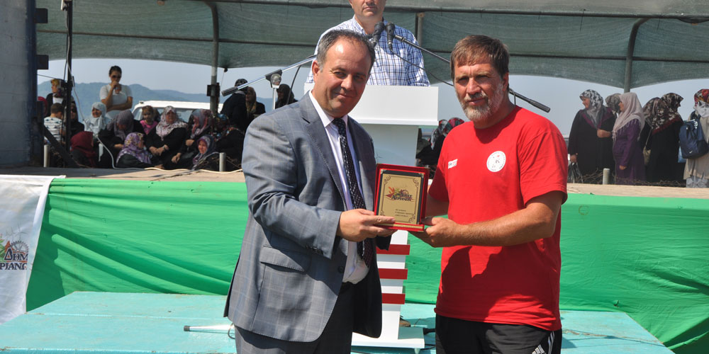 Konuşmaların ardından Kozlukebir Belediye Başkanı Rıdvan Ahmet, 2019 Alantepe Yağlı Güreşleri ve Kültürel Yağlı Güreşleri ve Kültürel Etkinlikleri’nin ana sponsoru Domruköy esnaflarından Çakır Market-Kasap Sahibi Mehmet Çakır’a, 2019 Alantepe Ağası Mehmet Ali Aga’ya, folklor ekibiyle etkinliklere katkı sağlayan Gümülcine Türk Gençler Birliği Başkanlığı’na ve Bursa’dan gelen misafirler adına heyet başkanına plâket takdim etti.