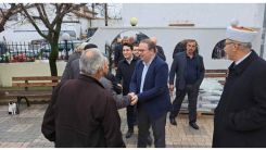 Köyü ziyaret eden yeni Gümülcine Başkonsolosu Ünal'ı Domruköylü soydaşlar caminin avlusunda karşıladı.